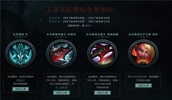 lol5杀乐队凯尔图标活动领取地址 lol5杀乐队凯尔图像领取网址