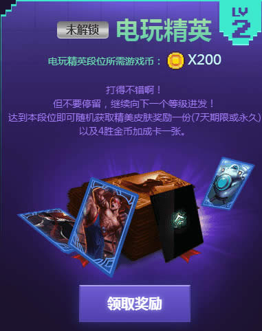 达到本段位即可随机一个用永久电玩皮肤或珍稀的电玩图标