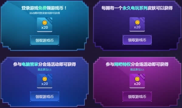 活动期间参与特权网吧、QQ会员、电脑管家等活动均可获得 20 游戏币
