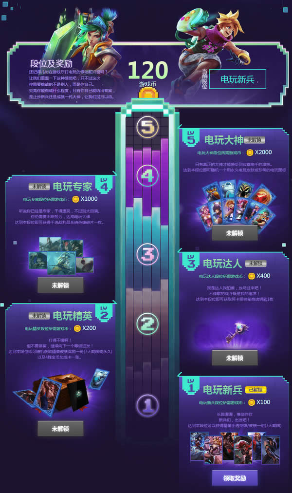 2.玩家可以通过活动开始时已解锁的5级或以上英雄成就和活动期间解锁的英雄成就以及参加其他活动获得游戏币解锁不同段位