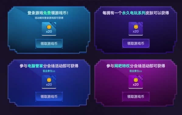 活动期间参与特权网吧、QQ会员、电脑管家等活动均可获得 20游戏币