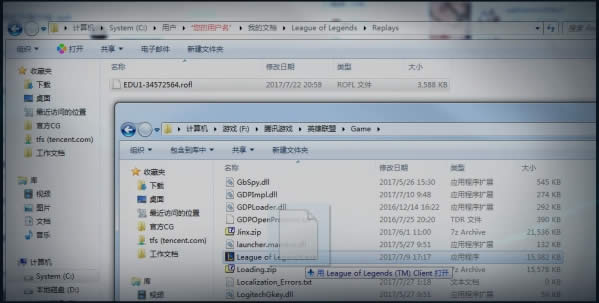 将录像文件拖动至游戏安装目录下的 英雄联盟\Game\League of Legends.exe上,即可观看录像。
