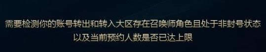 目前暂时还不知道是否支持转区进入到热门大区,考虑到服务器问题这有一点不现实,但是最后可能会允许限量或者达到要求的玩家转入到热门大区,例如一区艾欧尼亚。