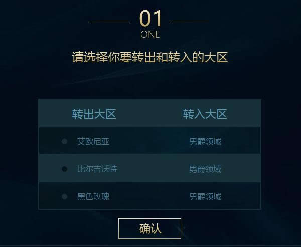 选择转出大区以及转入大区后,点击确认即可完成第一步。