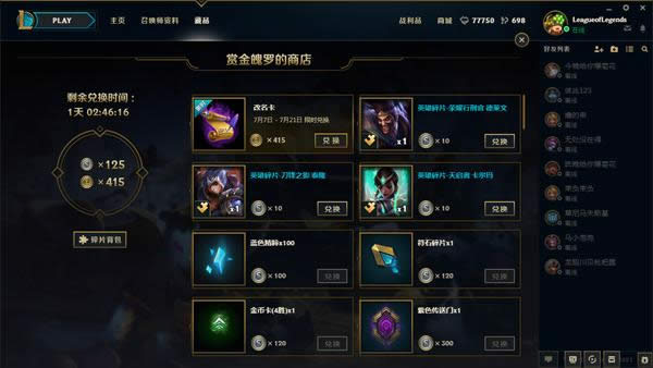限时兑换改名卡:那么魄罗赏金有什么用呢,它可以兑换大家期待已久的英雄联盟改名卡!