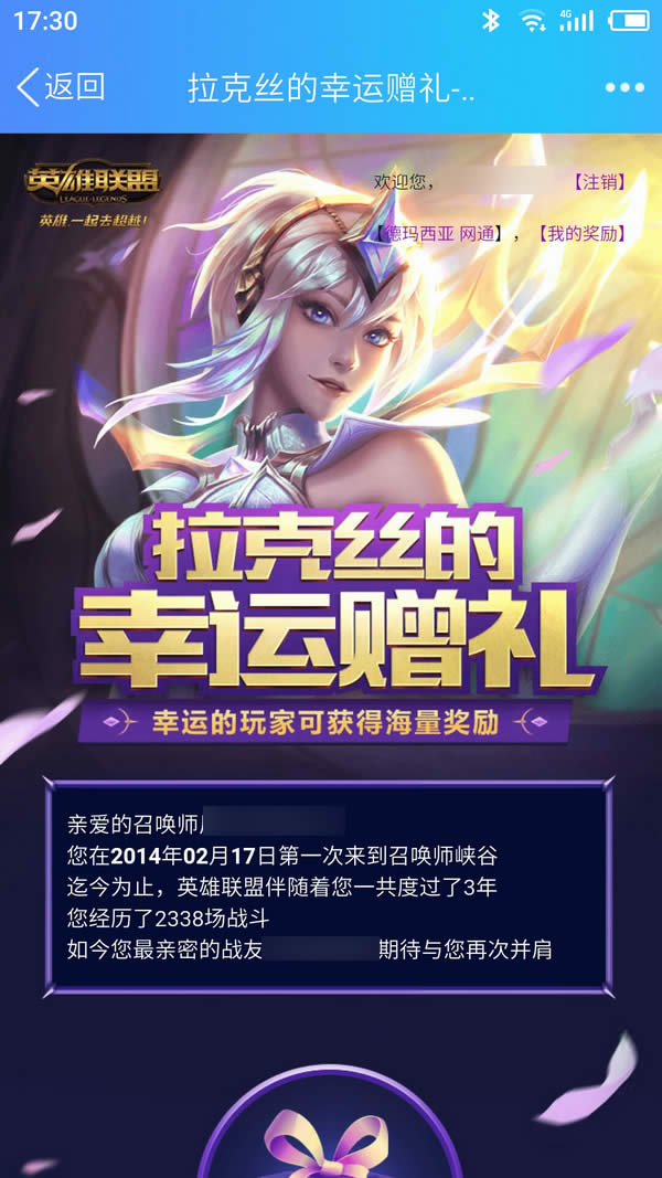 拉克丝的幸运赠礼活动来了,这次是完全送福利的活动,登录就可以抽取皮肤和金币卡经验卡等奖品,不需要完成特定任务,很多玩家还不知道拉克丝的幸运赠礼怎么领取,小编为大家带来LOL拉克丝的幸运赠礼领取方法!