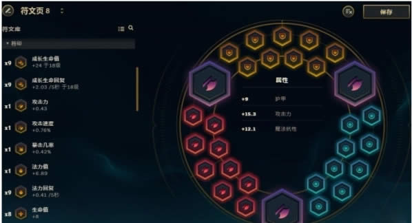符文其实没啥好说的,红色攻击符文×9(或者带上一定护甲穿透)、黄色固定护甲×9、蓝色魔抗雕文×9(可以带一定减CD)、大精华固定攻击×3。