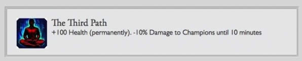 永久增加100生命值,但游戏前10分钟对英雄伤害减少10%