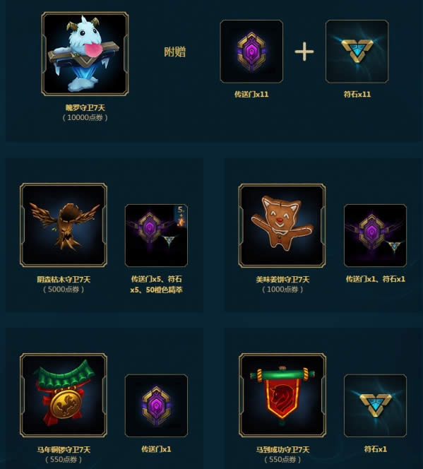 使用1个符石可开启1个传送门,并发现惊喜奖励,奖励内容包含皮肤碎片、守卫皮肤碎片、英雄碎片及召唤师图标中的一项。