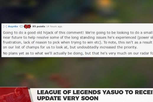 上面这段文字翻译过来就是:介于亚索长期存在的问题,(拳头)决定将在不久后对亚索进行一些小调整。此次改动亚索并非是因为10Ban后他的禁用率持续升高,而是亚索之前就已经在他们观察(改动)的名单之上。虽然暂时没有具体的改动思路,但亚索调整的优先级很高,马上就会着手。