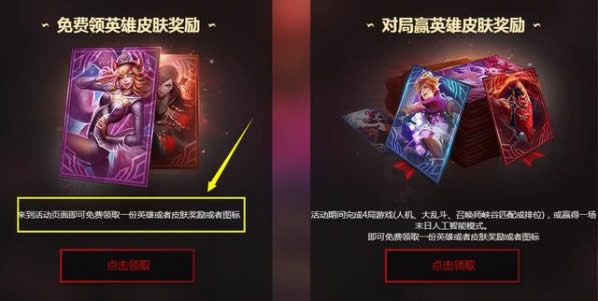 即可免费领取一份英雄或者皮肤奖励或者图标。