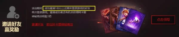 活动期间,成功邀请1名以上近期未登录游戏的好友再次登录游戏。邀请成功者还有机会获得阿卡丽神秘商店钥匙1把。