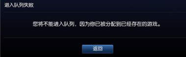 Q:尝试进入匹配模式排队时,提示:“您将不能进入队列,因为你已被分配到已经存在的游戏”