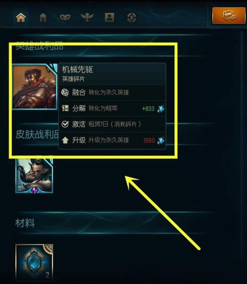 与永久碎片一样,都是随机产出某个英雄的碎片战利品,小编还是建议大家用第一种配方来提升英雄成就等级六七级!