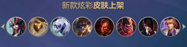 复仇武神 贾克斯、死神 卡尔萨斯、蒸汽机器人 布里茨、屠龙勇士 薇恩、魔蛇之拥 卡西奥佩娅、死亡骑士 内瑟斯、德玛西亚之力 盖伦、 潮汐海灵 菲兹、圣枪游侠 卢锡安、锦鲤 娜美、星界游神 巴德将会错误地展示为系列名称(而不是单独的名称)诺克萨斯之手 德莱厄斯 暗金将军 将被错误地展示为“铁血将军”。