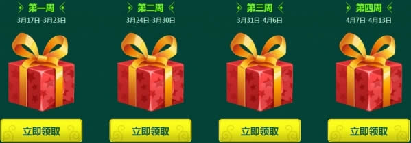 A:是的4周的奖励是一样的,但是每周只能领取一次。