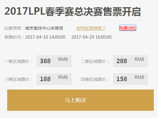 LPL春季赛决赛时间 2017LPL春季赛总决赛购票向导