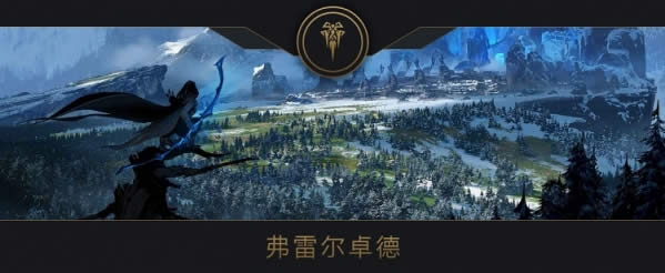 当时下着大雨,今天也在下着。北方的冻雨倾泻而下,冲刷着犬牙交错的群山。这道山脉便是德玛西亚和弗雷尔卓德间的天然屏障。此刻,一场风暴正在北方的山峰背后酝酿,但高山挡住了乌云,低处的山坡开始逐渐披上德玛西亚松树的绿毯。虽然青松不畏严寒,顽强地生长着,但却被常年的北风吹弯了腰。向东西两侧望去,无尽的山脉渐渐被蔚蓝的阴霾覆盖,天空则是压抑的暗黑色,就像她哥哥不苟言笑的性格。北边,高原的半山腰被森林覆盖,遍布悬崖和裂谷。这是一片险恶的土地,凶残的生灵和狂野的怪兽,应有尽有…………