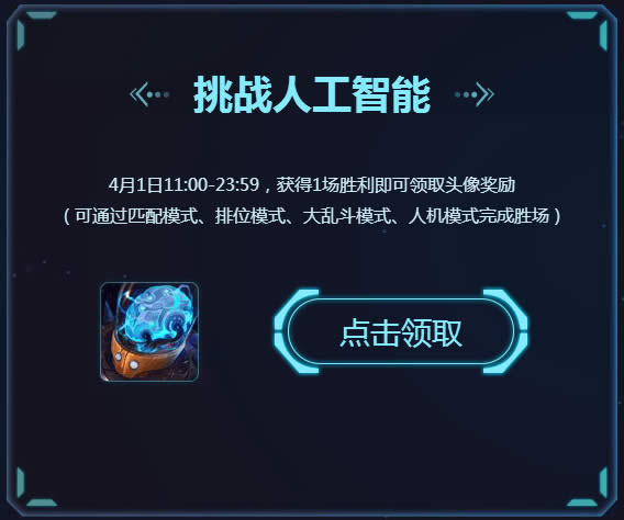 4月1日11:00-23:59,获得1场胜利即可领取头像奖励