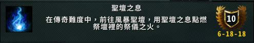 敘述有些拗口,就是拾取地上的鍊金火焰(小瓶子),一次燒掉三個小怪屍體即可。這個王的技能時間軸是每次復活之間會召喚兩隻小怪,通常打法是在復活前打死該輪小怪燒掉,做成就就是存怪一口氣燒掉。 注意:記得相對集中、五碼分散,小怪的攻擊是5碼AOE 風暴祭壇 / 风暴圣坛