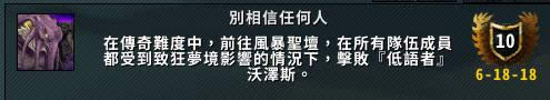 暫缺 早期副本有bug,打就跳成就,實際上不知道怎麼召出成就怪