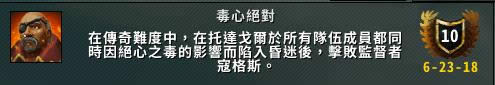 簡單說就是不能中任何技能、除了普攻白字外不能受到任何傷害,所以一定要躲好地上的紅水綠水、打斷所有的血箭。這也是DPS越快,出意外的機會越小,也就越容易解的成就,建議全技能嗜血RUSH。