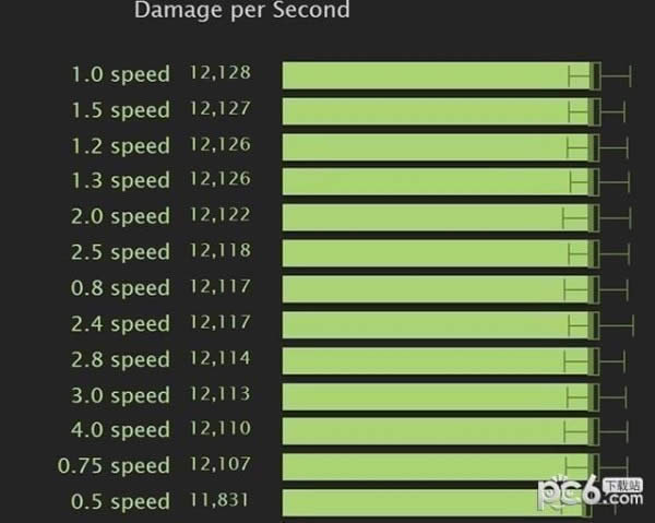 为啥好像大家都没发现呢?很简单,因为不管攻速快慢,伤害总量一样。德斯提拉克攻速是奇美隆的8倍,但是奇美隆的每一击伤害是德斯提拉克的8倍!不仔细看的话也许看不出。 我们在完全弄清楚机制之前没准备写帖子分享的。因为我们不想让人觉得攻速或单次攻击伤害就都去抓德斯提拉克或奇美隆。而且事实上,德斯提拉克攻速太快了,所以不适合兽王,因为攻速上限是0.25,你的倒刺叠加的攻速超出部分就浪费了。奇美隆的伤害很高,是个优势但是有时候也会是劣势。 那么这是设计师有意的还是? 也许这是设计师有意为之,也有可能只是一个代码变化。但是之前好像都没人发现,到现在也没有出什么问题。所有宠物还是会造成一样的伤害,尽管攻速不一样。 我觉得这只是让宠物更有意思了。也许你会喜欢一个慢速,高伤的宠物;也许你会喜欢一个疯狂在你屏幕上刷伤害的宠物,在副本AOE疯狂顺劈斩的宠物。 具体数据? SIMC已经有相关的选项可以测定宠物的攻速,所以我模拟了很多次。对所有已知攻速不同的宠物进行了模拟。就像你们看到的,实际没啥区别。误差只有20左右。 唯一的例外就是0.5最快攻速的德斯提拉克,因为它到了攻速上限,反而损失了倒刺射击的加成,伤害变低了。