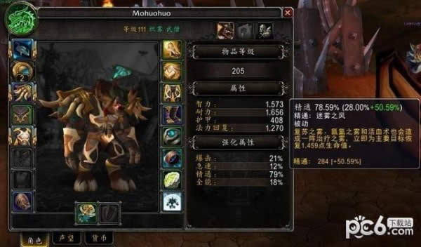 第一层 分PVE与PVE 萦绕之雾:被动,氤氲之雾的持续时间延长1秒,治疗加成提高10% 真气波:瞬发,一道真气能量波拂过你的盟友和敌人,造成269点自然伤害或者恢复467点生命值。可弹射到25码范围内的目标身上,最多弹射7次。15秒冷却时间。 真气爆裂:0.9秒施法,向前丢出真气能量漩涡,最远40码,对其路径上的所有敌人造成1243点自然伤害,并为武僧和所有盟友恢复1283点生命值。30秒冷却时间。 第二层 跑位的分类 动如脱兔:被动,使滚地翻的冷却时间缩短5秒,试用次数上限提高1次。 散魔功:瞬发,使你受到的所有魔法伤害降低60%,持续6秒。如果可能的话,还会将你身上当前激活的所有有害魔法效果返还给施法者。1.5分钟冷却。 真气突:代替滚地翻,瞬发,向前突进很长一段距离,并使移动速度提高30%,持续10秒,可叠加2次。最多可使用2次,20秒充能。 第三层 回蓝的分类 生生不息:被动,氤氲之雾会使你的下一个活血术的法力消耗降低20%。活血术会使你下一个氤氲之雾的法力消耗降低20%。 仙鹤之魂:被动,禅院教诲会使每个额外的幻灭踢为你恢复0.65%的法力值。 法力茶:瞬发,使你的法术消耗的法力值降低50%,持续12秒。1.5分钟冷却。 第四层 控制分类 猛虎扫尾:被动,使扫堂腿的范围提高2码,冷却时间缩短10秒。 赤精之歌:1.62秒施法,释放一团催眠云雾,缓缓向前移动。接触到雾气的敌人将陷入沉睡,迷惑20秒。30秒冷却。 平心之环:瞬发,在目标位置形成平心之环,持续5秒。进入环中的敌人将被推出环外。 第五层 自保解控功能性与 金疮药:瞬发,涂抹金疮药,为你恢复15%的最大生命值。如果你的生命值降至35%以下,会自动触发金疮药效果,并获得一次使用次数。最多可使用2次。30秒充能。 迅如猛虎:瞬发,使一名友方目标的移动速度提高70%,持续6秒,并解除所有定身和诱捕效果。30秒冷却。 金刚不坏:瞬发,使你在10秒内受到的所有伤害降低20%-50%。伤害越高,减伤比例越高。2分钟冷却时间。 第六层 加血功能性 青龙雕像:瞬发,在目标位置召唤一座青龙雕像。当你引导抚慰之雾时,青龙雕像也会开始对你的目标引导抚慰之雾,每0.9秒为其恢复304点生命值。 碧玉疾风:瞬发,消耗1272点法力值。在你身边召唤出一股旋转疾风,在8.1秒内为10码范围内最多的6名盟友恢复2041点生命值。8.1秒冷却???(受急速影响) 朱鹤赤精:瞬发,召唤朱雀赤精的雕像,持续25秒。赤精会用神鹤为附近的盟友恢复855点生命值。3分钟冷却。 第七层 核心技能强化 艺业精纯:被动,精华之泉冷却后每过6秒,下一次释放精华之泉时可以额外引导1秒。精华之泉的持续治疗效果延长4秒。 雷光聚集:被动,雷光聚神茶现在会强化你的下2个法术。 沈腾迷雾:被动,释放旭日东升踢回味多有带有你的复苏之雾,氤氲之雾或精华之泉效果的目标恢复380点生命值,并将这些效果的持续时间延长2秒。 核心技能注释 精通:迷雾之风。被动,复苏之雾、氤氲之雾和活血术也会造成一阵治疗之雾,立即为只要目标恢复1623点生命值。 复苏之雾:瞬发,1090法力消耗。你用疗伤的迷雾环绕目标,在20秒内为其恢复3686点生命值。一旦复苏之雾产生过量治疗,就会飘向20码内另一名受伤的盟友。每当复苏之雾造成治疗效果时,就有4%几率使你的下一个活血术的治疗效果提高40%。 氤氲之雾:1.8秒施法,1890法力值。用治疗迷雾包裹目标,在7秒内为其恢复6090点生命值,并使目标从你的其他法术获得的治疗效果提高40%。 活血术:1.35秒施法,制造一道活力之雾,为目标恢复1899点生命值,并为所有具有你的复苏之雾效果的盟友恢复855生命值。 抚慰之雾:需引导,每秒消耗145点法力值。在7.2秒内为目标恢复6842点生命值。引导期间,可以使对目标施放的氤氲之雾和活血术变为瞬发。 精华之泉:需引导,2617法力值。施放一个告诉旋转的漩涡,每一秒向30码内的至多6名盟友施放治疗箭,持续2.7秒每个治疗箭能为一个目标恢复641点生命值,并在8秒内额外恢复253点生命值。迷雾之风(精通)会对受影响的目标造成两次治疗。可以在移动中施放。 唔,码字完毕。现在来谈谈奶僧目前状况。新手奶僧,除了接受能力快,经验远远比不上大家,但是我确定,天赋大改! 粗暴,目前唯一的感觉,已经习惯了近战NQ的手法。再来玩玩奶僧,奶骑直接秒成渣渣。我估计也没其他的奶妈能与之比肩。至少是到目前为止!!!吃斋念佛扫扫地,别以为我没火气! 首先来张爆炸面板