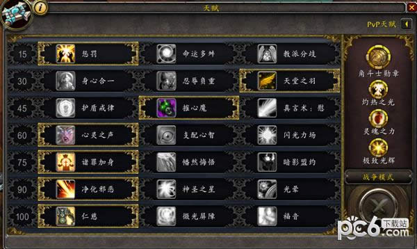 第一层 惩罚:让你的苦修多一跳。施法时间不变。 教派的收益晚些时候测试一下,我自己的打时候教派用的少抱歉 第二层 天堂之羽:瞬发,在目标位置放置一根羽毛经过羽毛的玩家移动速度会提高40%。持续5秒 第三层 摧心魔:召唤一个摧心魔攻击目标,持续 12秒,每次攻击能回复0.5%的最大法力值。替代暗影魔。1分钟cd。伤害大约是暗影魔的80%,但是cd短得多。 第四层 心 灵之声:心灵尖啸冷却时间缩短30秒。 第五层 诸罪加身:你的伤害提高最多12%,随着救赎数量增加而减少。0-1个救赎时为12%,2个10%,3个8%,之后多一个减1%,最少3%。不增加宠物造成的伤害。 暗影盟约:目标和目标附近的4个受伤目标造成189%法术强度直接治疗,6秒内留下我方治疗吸收盾,数值为有效治疗的一半。12秒冷却时间,2.8%法力消耗。 若点幡然醒悟的话,苦修一般往队友身上打了,苦修占比就会接近救赎治疗量拍到第二,输出就会降低很多。 测试之后,重伤治疗机制,溢出量小,瞬发,救场强无敌! 第六层 净化邪恶:成30%法术强度伤害并在20秒内造成165%法术强度伤害,并使得苦修可以将其扩散,1.8%法力消耗。替代暗言术:痛。 第七层 仁慈:有救赎的目标受到的伤害降低3%。 4.属性及装备选择