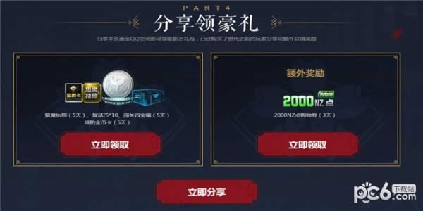 分享本页面至QQ空间即可领取影之礼包,已经购买了世代之影的玩家分享可额外获得奖励