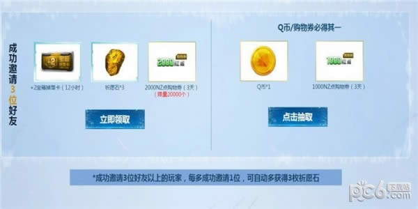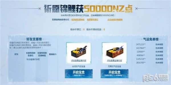 2.成功邀请3位好友以上的玩家,每多成功邀请1位,可自动多获得3枚祈愿石,快来用祈愿石和祈愿树枝打开宝盒,召唤锦鲤赢取50000NZ点吧!