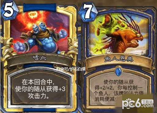 寒光先知3费2/3,战吼给其自己的他鱼人+2生命值,在随从交换时非常有利。蛮鱼斥候的战吼是如果你场上有鱼人随从,发现1张鱼人牌。在实战中,经常会出现手牌不足的情况,所以这张卡就变得非常重要。小编缺手牌的时候用蛮鱼斥候发现蛮鱼斥候,感觉真是爽。这两张卡在实战中都是非常好用的,所以并列第二。