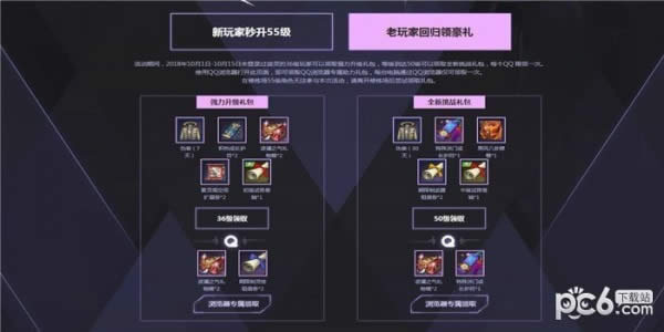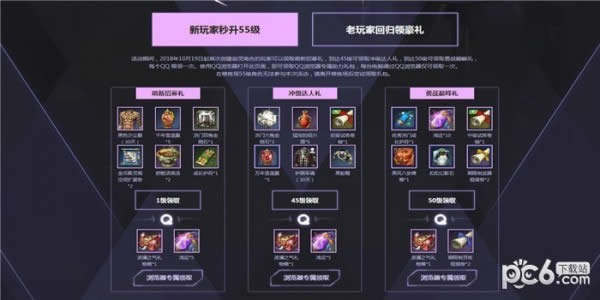 1.活动期间,2018年10月19日起首次创建剑灵角色的玩家可以领取萌新招募礼,到达45级可领取冲级达人礼,到达50级可领取勇战巅峰礼。
