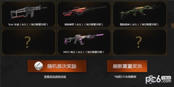 4、刷新重置奖池需要消耗5枚友情徽章,每日只可重置1次;