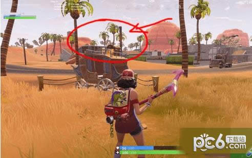 而这个位置也就在棕榈天堂北边的马车上,玩家前往下图所示位置,就可以看到一个马车。