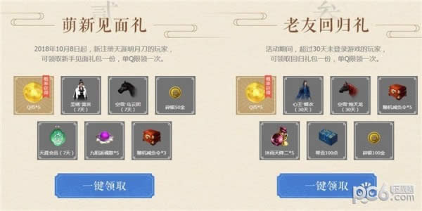 1.2018年10月8日起,新注册天涯明月刀的玩家,可领取新手见面礼包一份,单Q限领一次。