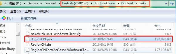2.在游戏目录下找到FortniteGame\Content\Paks\RegionCN.pak文件后删除。