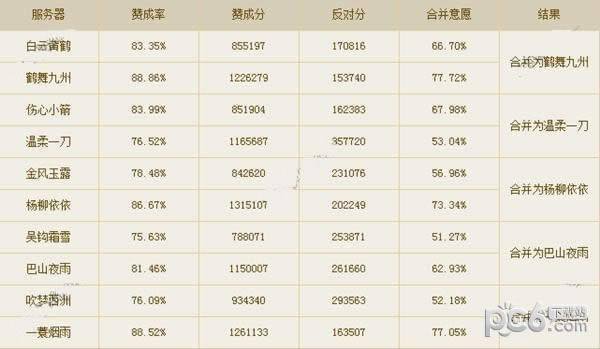 当合并意愿满足合服要求(服务器赞成分数均大于投票总分的50%)时,投票成功,否则合服投票失败,暂不合服。