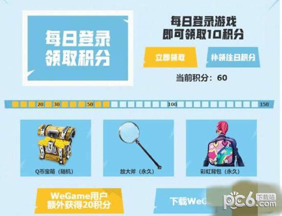 步骤二:在WeGame内置浏览器的网址里打开堡垒之夜活动页面,你就会看到平时日常领取的下方多了一个“WeGame用户额外获得20积分”,最后点击领取。