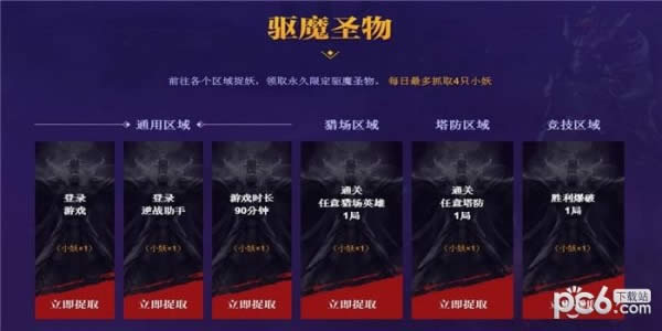 1.前往各个区域捉妖,领取永久限定驱魔圣物。 每日最多抓取4只小妖