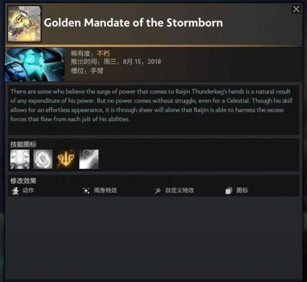 风暴之灵纯金不朽肩膀,改变三技能图标与特效。