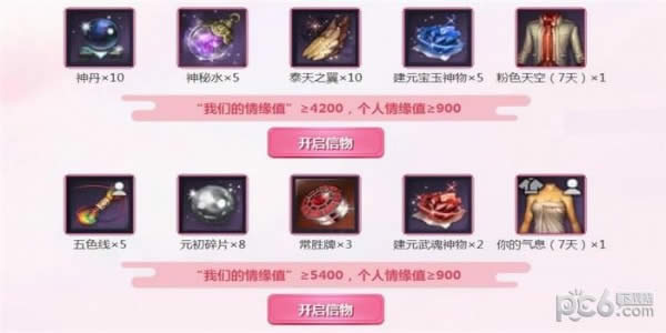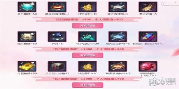 情缘值达到指定要求后,可以开启下列情缘信物。祝你们白头偕老!