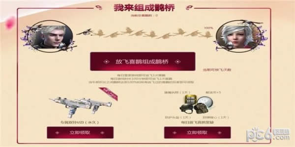 1.每日登录游戏即可放飞1次喜鹊,每日游戏时长100分钟即可放飞1次喜鹊,当牛郎织女之间鹊桥达到100%时所有放飞过的喜鹊的玩家即可领取.