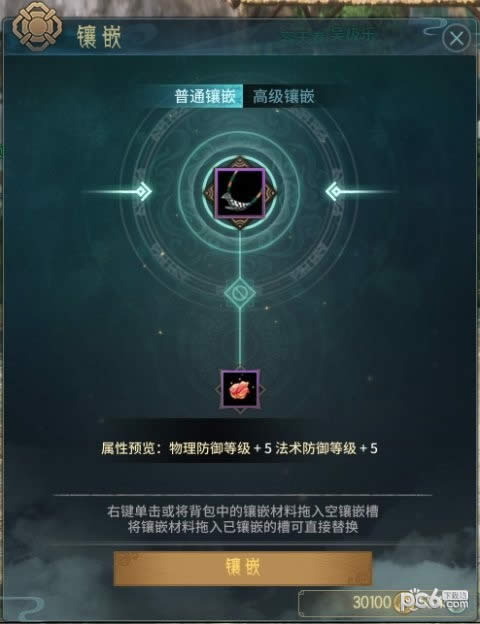 2.装备进行镶嵌后,材料所具备的属性会附加到装备上,高级镶嵌可以附加更特殊的效果。