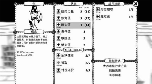 属性或者能力的升级需要消耗经验值,而左边栏目里清楚地显示着你剩余的经验值。
