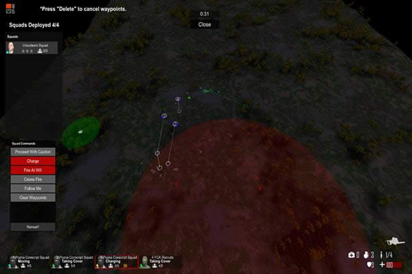 部队打的难分难解的时候 你就可以把一队调过去记住 把部队改成冲锋模式然后 等到一个有掩体的地方以后 马上改回来 队伍里分出两队部队去包抄敌人