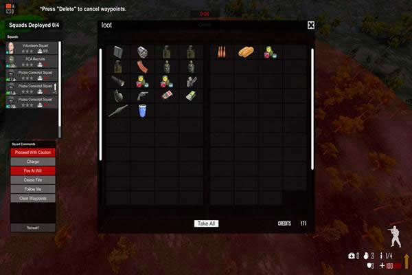 一开始开局我们只有一把手枪 1000块钱 两队士兵 和若干子弹以及实物(背包里有弹匣但是你要装备才可以使用) 所以一开始呢 我们只能找些软柿子捏