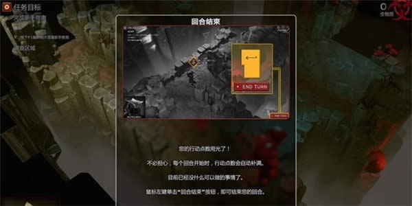 游戏采用回合制的游戏方式,每一个回合,玩家都会获得相同的行动点,玩家的移动、动作、攻击都会消耗行动点,行动点耗尽则无法移动。