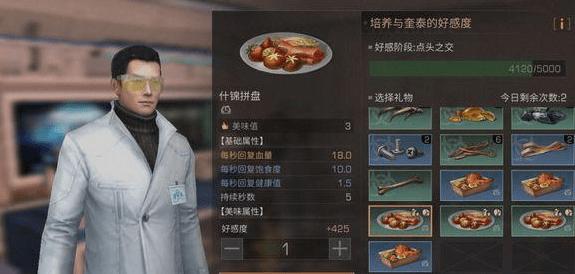明日之后奎泰送什么: 奎泰喜欢吃:什锦拼盘、肉酱意大利面、草莓果冻、奶味牛角包、三明治、水果牛奶。用这些就可以提高它的好感度。