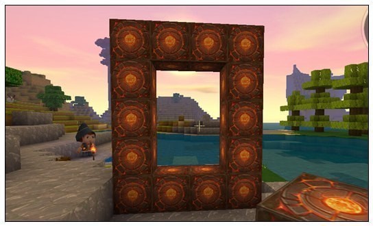 然后在门框中间填充6块“地心传送门块”就能做成地心门了,直接站上门框就能传送到地心世界了!